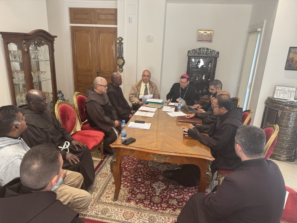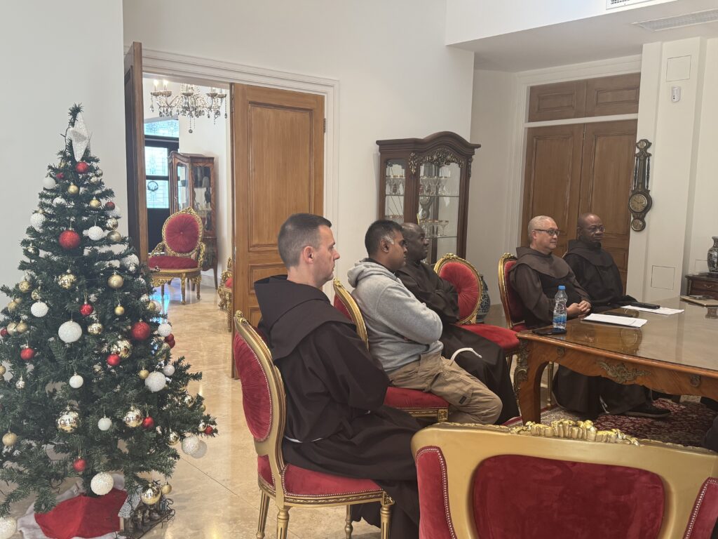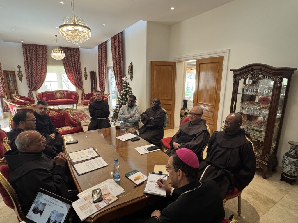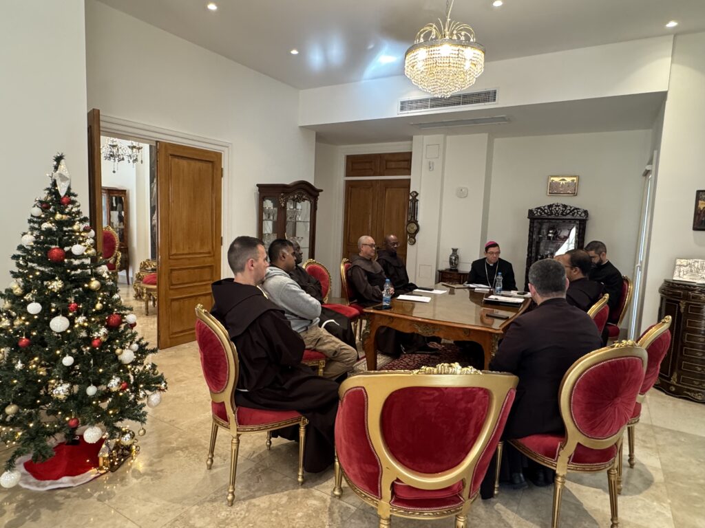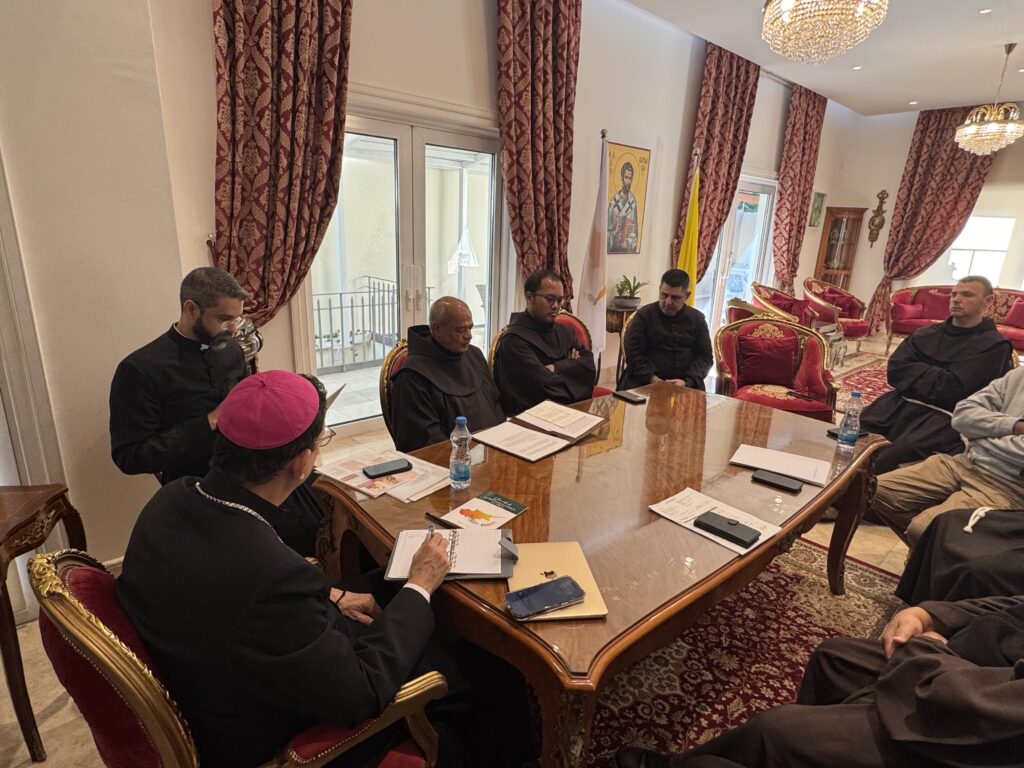 In the presence and with the participation of His Excellency Bishop Bruno Varriano, Patriarchal Vicar for the Latins in Cyprus, the priests gathered this morning, Wednesday, December 14, 2025, for a spiritual and fraternal meeting in preparation for the Glorious Feast of Christmas.