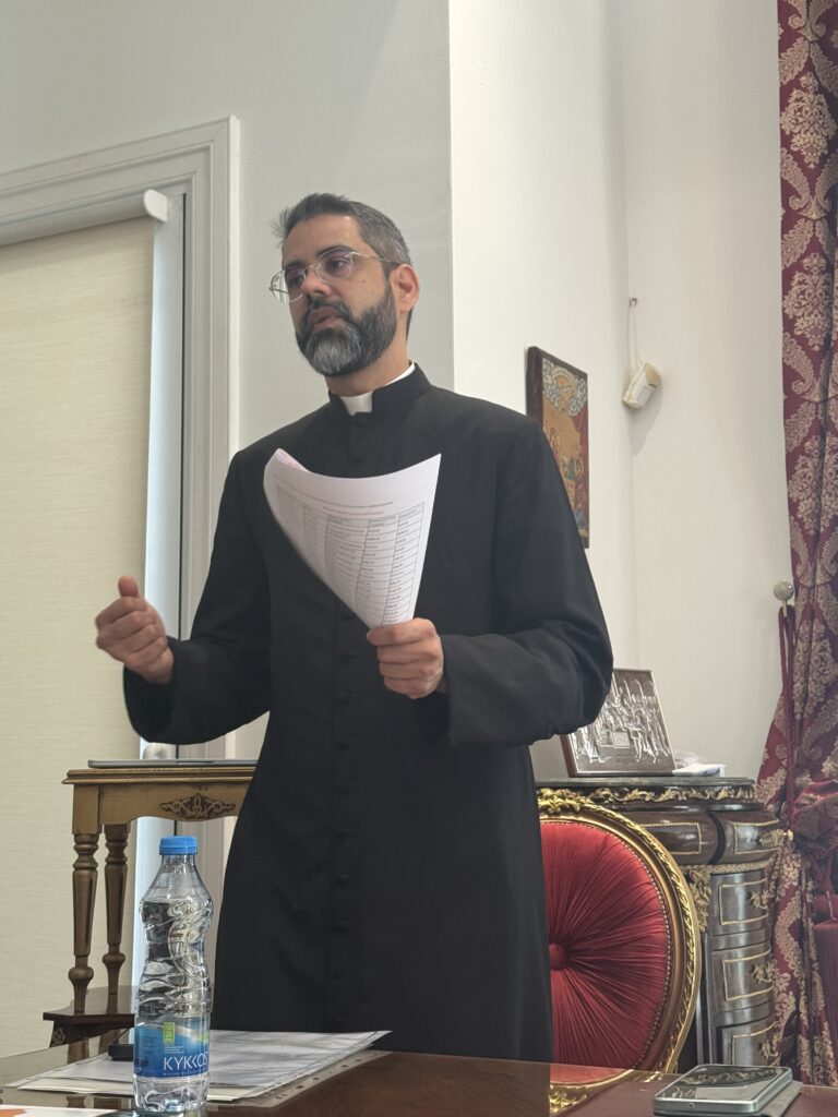 The gathering opened with prayer, followed by a spiritual reflection offered by Fr. Bernard Thilagarajah, parish priest of Saint Catherine’s Church in Limassol. His meditation presented several insights connected to the reality of priests’ lives and their pastoral ministry.